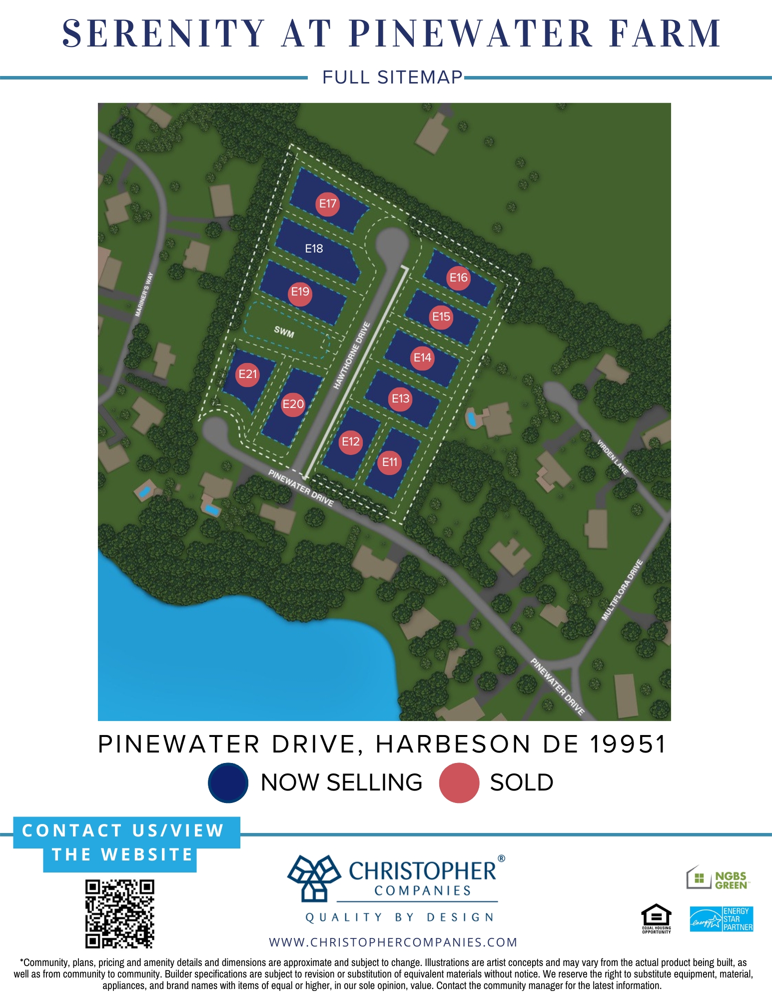 Explore 11 coastal-style single-family homes situated on over half-acre homesites in Harbeson, DE, at Serenity at Pinewater Farm, which offers bay access! Enjoy amenities such as a boat ramp, fishing pier, pavilion, and children's playground. Located near Rehoboth Beach and Downtown Lewes, with convenient access to Coastal Highway and Route 24 for a wealth of entertainment and recreational options. Experience serenity in this wonderful community!